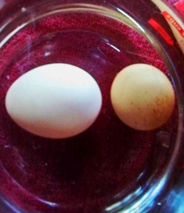- If you find an egg that looks very dark and floats right to the top of the water – handle this as if it were a live hand grenade. (If you hold it up to light it looks dark green and ominous.) Handle this with extreme care! Put it in several plastic bags and take it outdoors to the trash. A rotten egg is something you never want to experience, ever. I brought one into the house and figured it was old, but not bad. It exploded with a loud pop. One word: yuck.